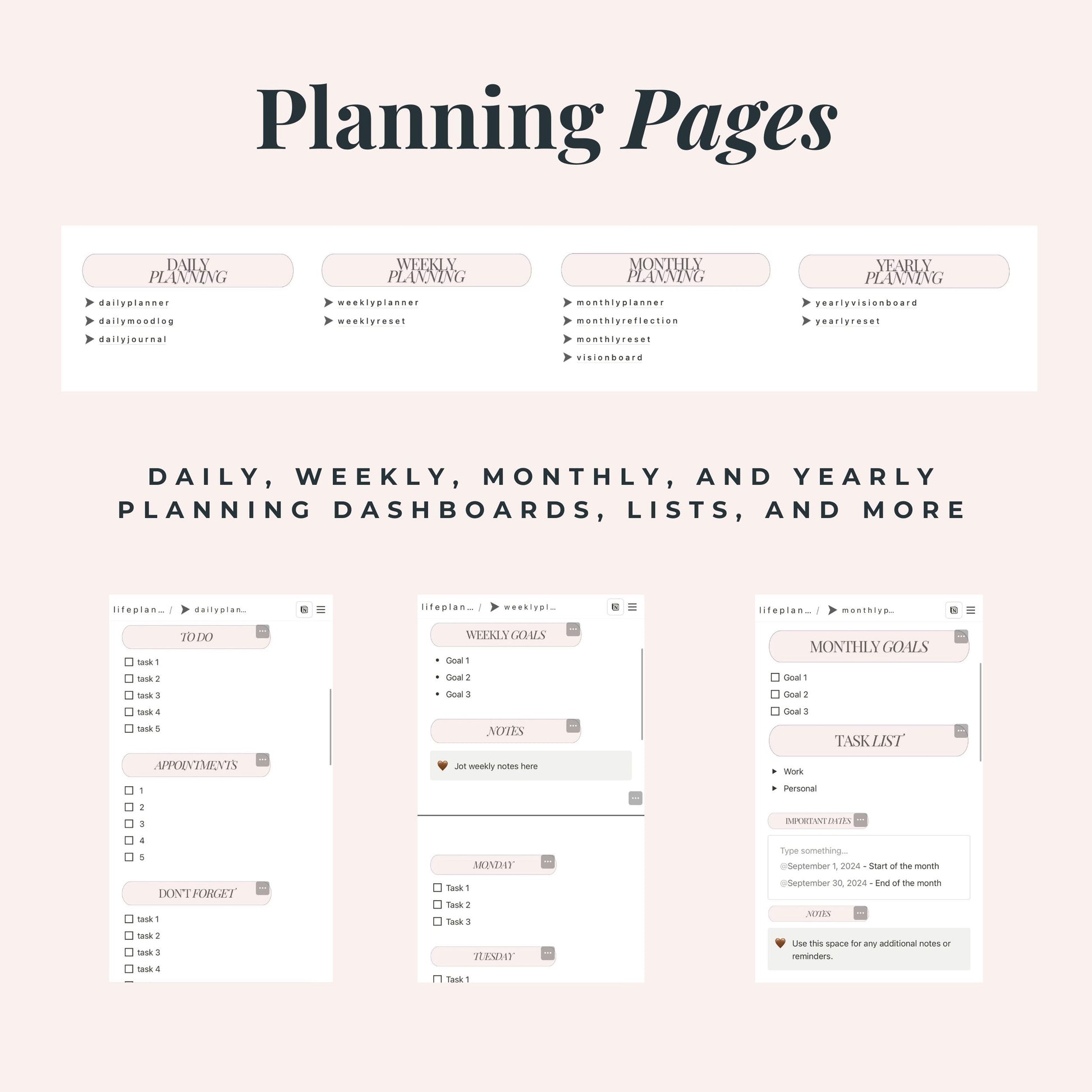 An aesthetic notion template life planner offers a minimalist dashboard and digital planner that includes easy to use daily, weekly, and monthly calendars. This versatile planner ensures a streamlined planning experience.