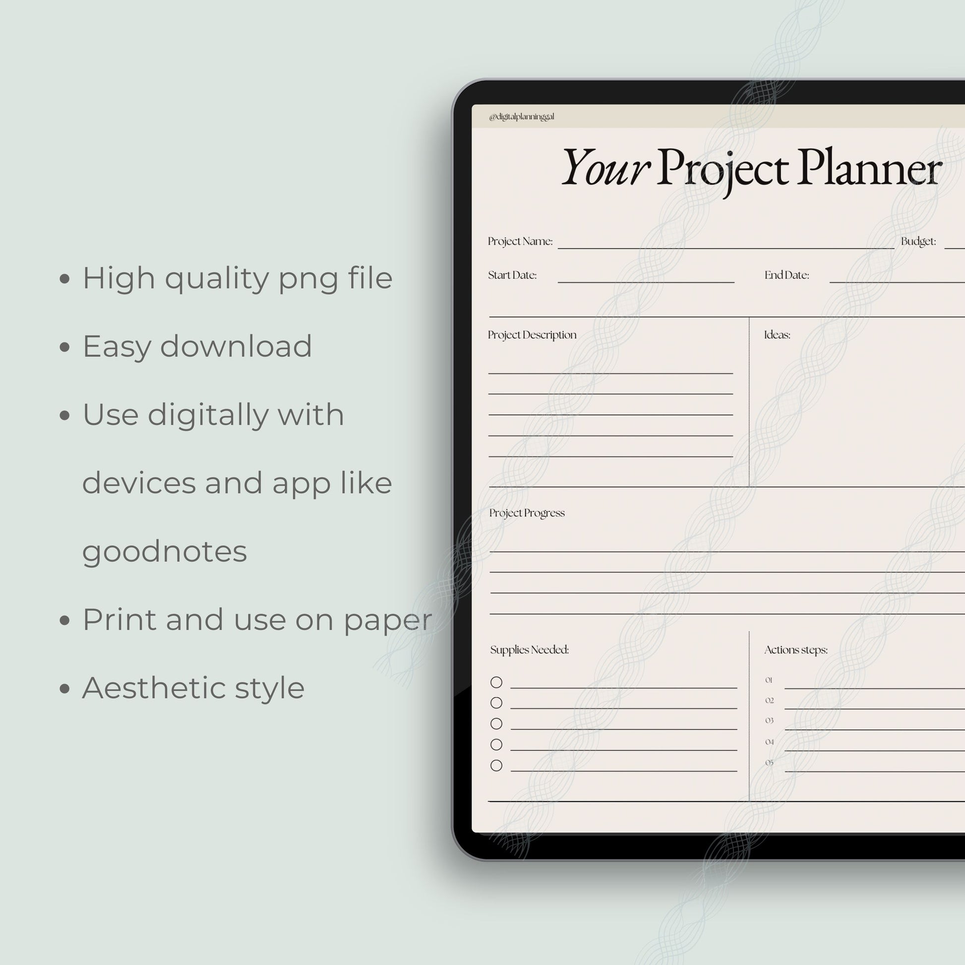 Aesthetic Neutral Minimal Project Planner Printable Digital, Digital Planner Insert, Project Planner Printable, Minimal Planner